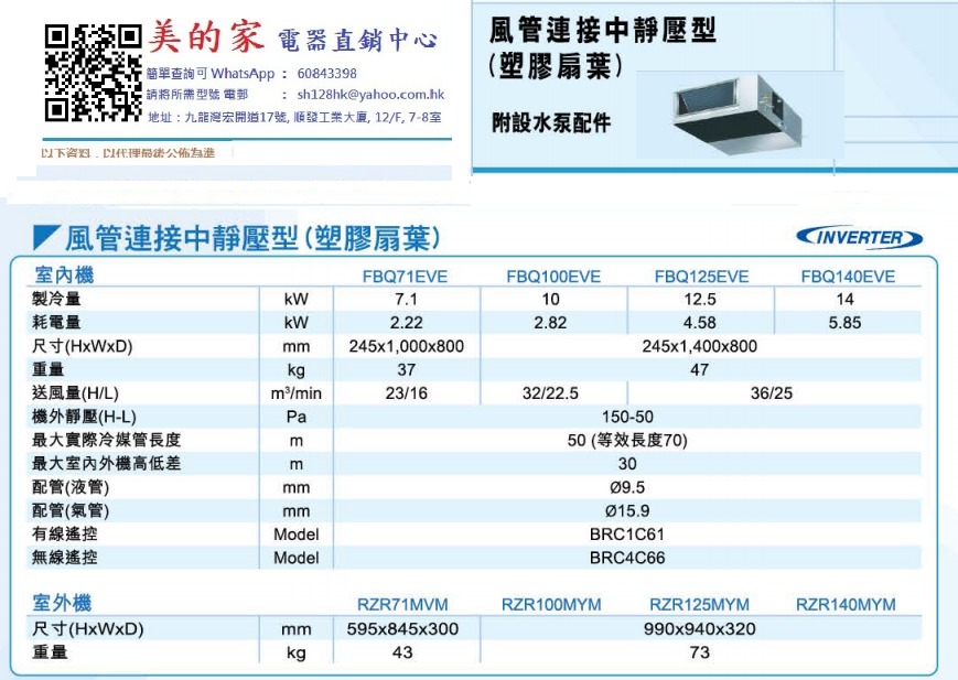 @ 1.5 匹 R410A 風管式 馬來西亞製造 |