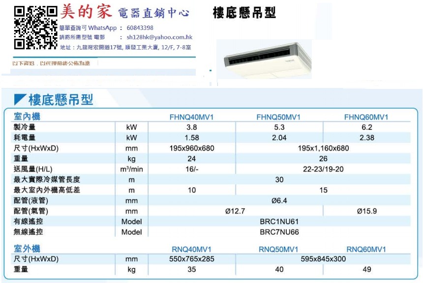 | MUE-24HRFNX-QRD0W | 吊天花 樓底/座地 變頻冷暖 | 查詢 |